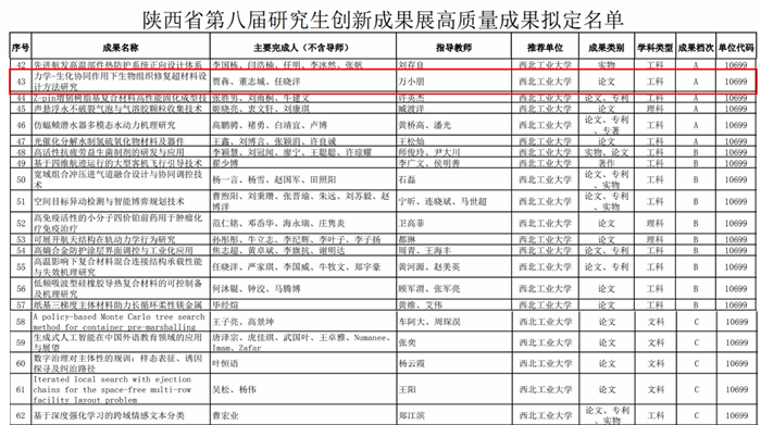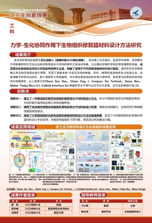 近日,由陕西省教育厅、陕西省学位委员会主办的陕西省第八届研究生创新成果展落下帷幕。beat365中文官方网站2022级博士研究生贾犇负责的“力学-生化协同作用下生物组织修复超材料设计方法研究”(指导教师:万小朋、黄河源)获得省级A类奖项(全校仅六项,全省57项)。本次获奖是学院学子首次参与陕西省研究生创新高质量成果展并取得的新突破!