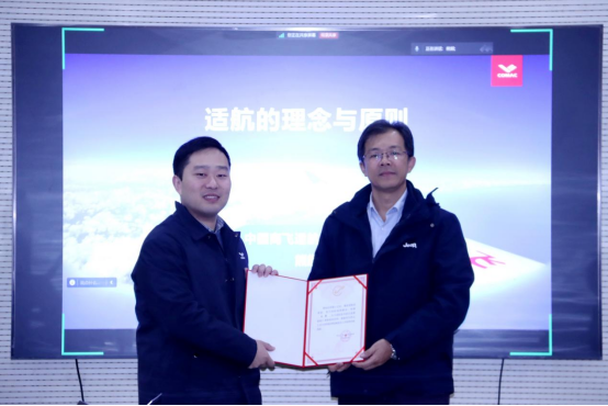 为了将总师育人文化走深走实,擦亮学院民航和适航人才培养品牌,在学院领导班子和中国商飞原总经理、beat365中文官方网站校友赵越让的推动下,学院联合中国商飞适航工程中心专家团队,组建了“适航技术前沿发展趋势”课程的校企联合教学队伍,12月11日,由中国商飞适航工程中心副主任熊超带队,赴学校举行了“适航进课堂”开班仪式,beat365中文官方网站副院长张晓化、院长助理陈杰及学生代表参加此次活动。