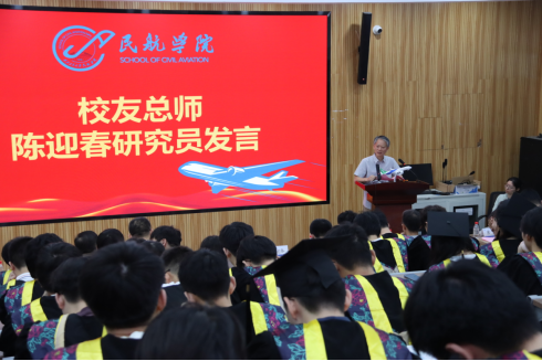 典礼结束后,陈迎春总师为毕业生带来题为《中国商用飞机发展》的“最后一课”专题讲座,系统讲解了中国商用飞机的发展历程与未来展望。他从商用飞机的战略地位谈起,详细分析了全球商用飞机发展现状,重点介绍了我国商用飞机从无到有的奋斗历程,特别是C919等型号的研制突破与创新特色,深入浅出地阐释了中国民航事业的特色发展道路。