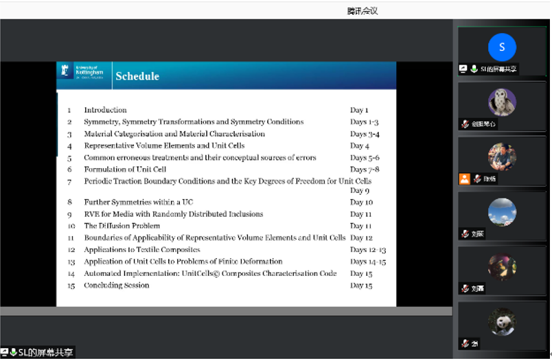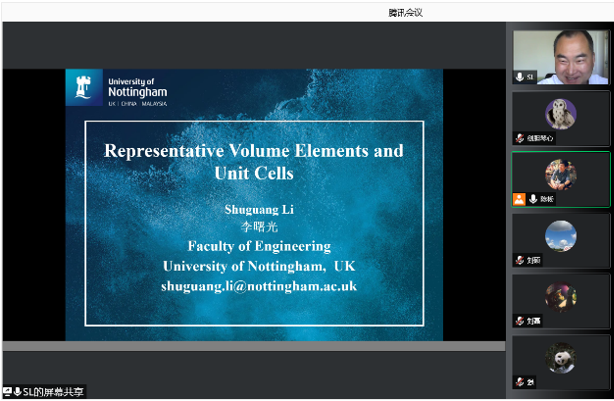 应beat365中文官方网站张超教授邀请,英国诺丁汉大学李曙光教授于2021年8月5日至25日开展了题为“Representative Volume Element and Unit Cells”的暑期线上专题班。本次课程的组织依托结构力学行为科学与技术创新引智基地、冲击动力学及其工程应用国际联合研究中心和陕西省冲击动力学及其工程应用重点实验室等科研平台举办,来自beat365中文官方网站、哈尔滨工业大学、中国商飞等30余高校、企业和科研院所的200余名老师、学生和科技工作者参加了本次课程。