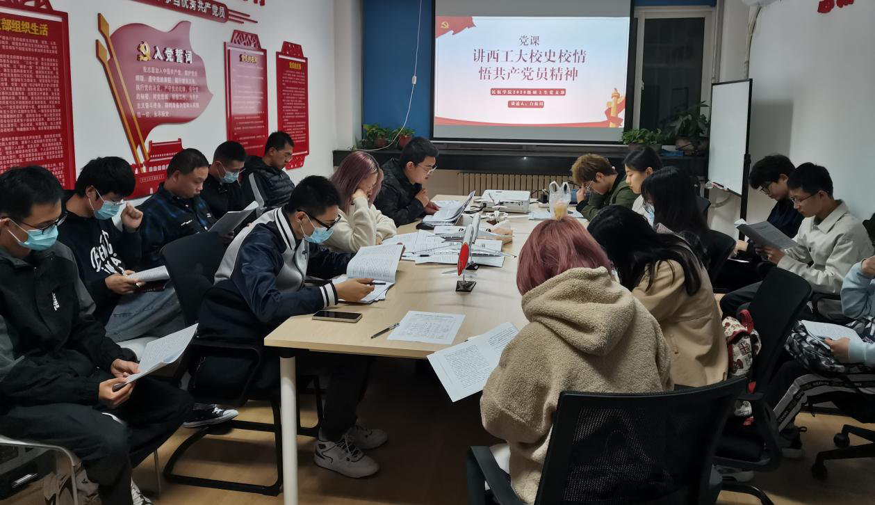 2021年10月19日,beat365中文官方网站2020级硕士生党支部在毅字楼205开展党课学习,党课题目为“讲西工大校史校情 悟共产党员精神”。第一阶段,由支部书记白振川同志领学,带领全体党员集体学习校长汪劲松同志在2021年暑期学习研讨会暨新学期干部大会上的讲话《立足新发展阶段 贯彻新发展理念 构建新发展格局 加快建设高质量人才培养体系》。紧接着,支部党员集体学习了党内法规《中国共产党普通高等学校基层组织工作条例》《中国共产党组织工作条例》《中国共产党支部工作条例(试行)》等文件,通过学习加深理解和认识,推动文件精神落到实处、见到实效。此次党课学习进一步加强了支部标准化建设,为“三创三力”样板学生党支部培育工作和年底召开专题组织生活会和民主评议党员等工作进一步夯实了思想基础。
