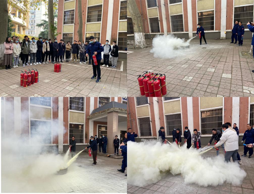 讲座结束后,组织全体参会师生在办公大楼B栋前的空地进行了火灾的实地扑救演练。公安处消防科的老师亲自操作向学生展示和讲解灭火器的使用方法和注意事项,并告诫师生们在面对火灾时要沉着冷静,不恋财,将自己的生命安全放在第一位。在场师生都积极响应,按要求分组进行演练,有效掌握了灭火器的使用方法。