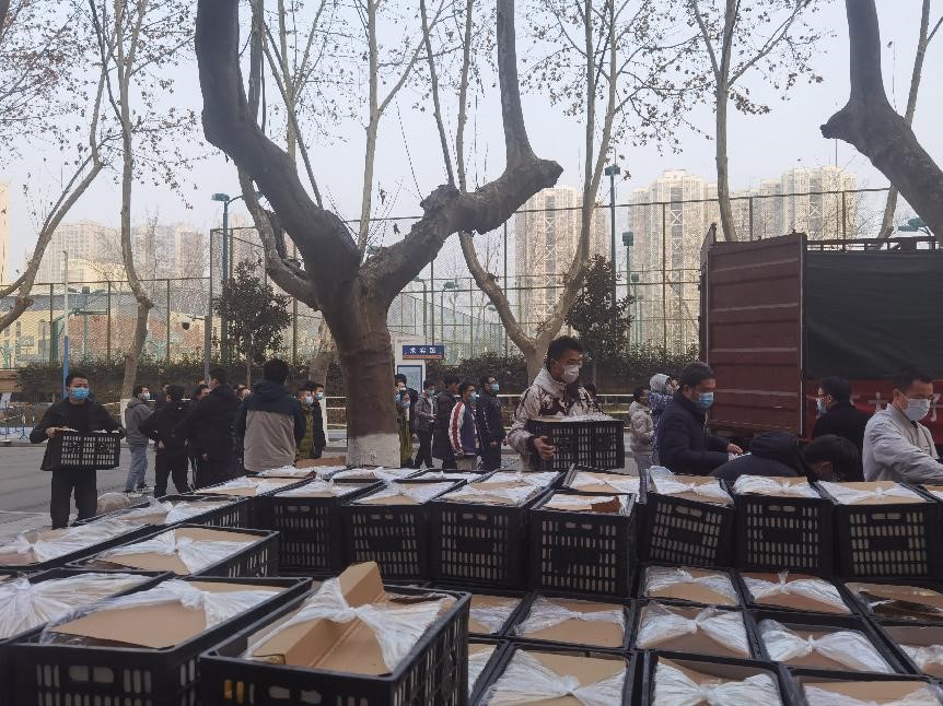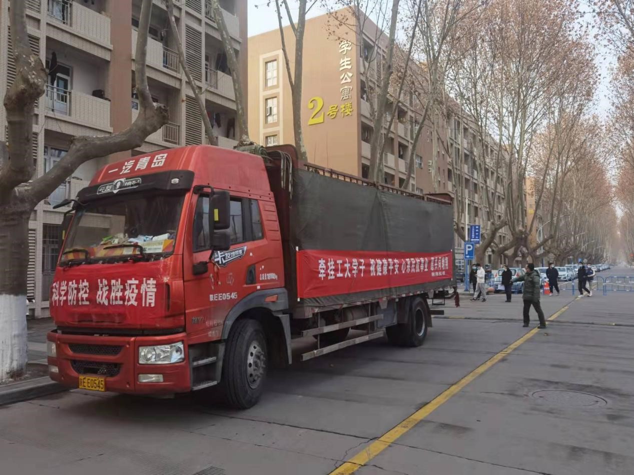 beat365中文官方网站领导在得知学生水果供应短缺的情况后,立即联系相关合作单位,翱翔航校积极响应,在短短一天时间内,组织货源、安排运输车辆、办理相关手续、完成装箱装车。1200余筐,重约16吨的苹果分两辆卡车分别从澄城水果基地送至友谊校区和长安校区。其中,友谊校区的物资凌晨三点就抵达校门口待命。