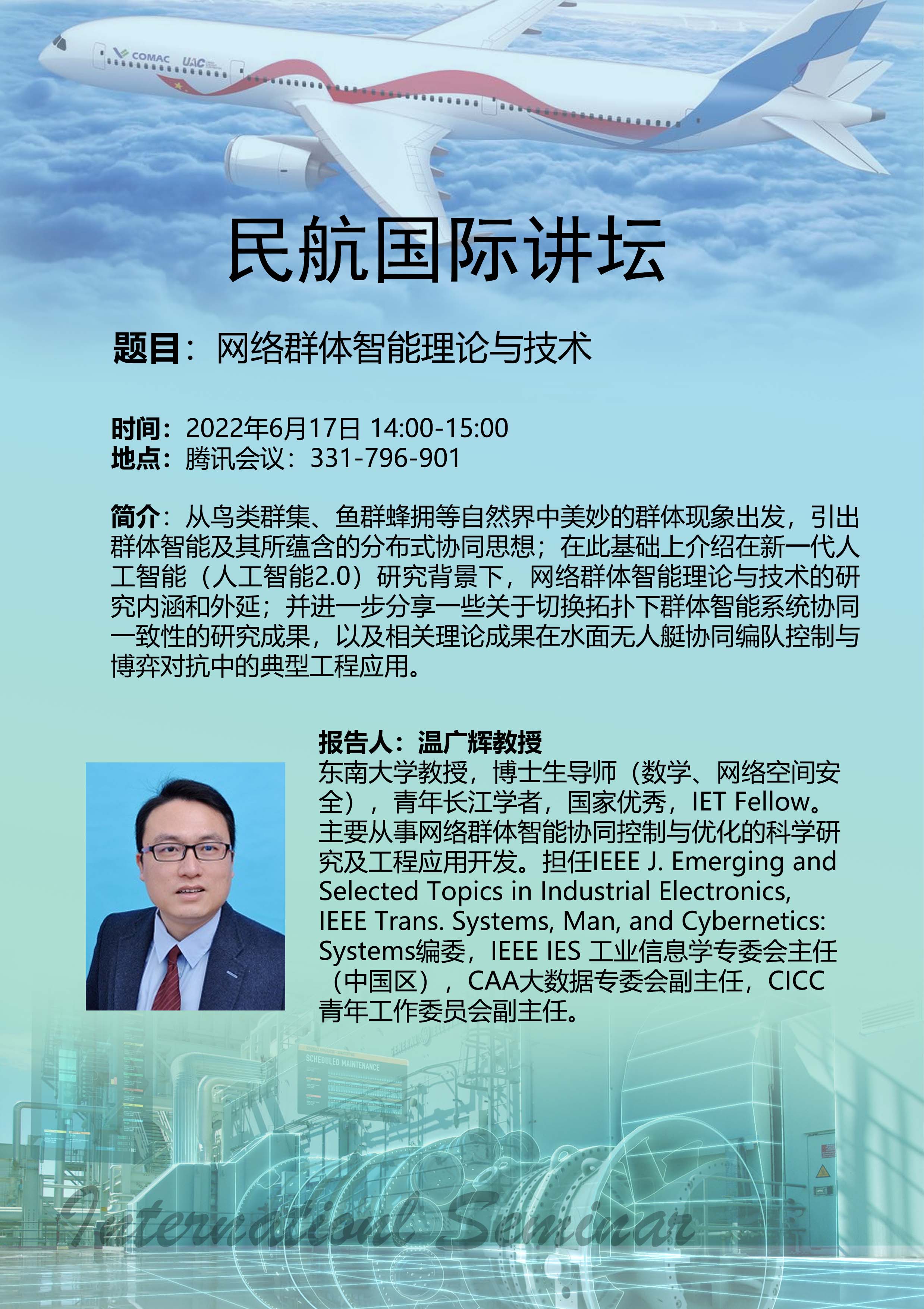 6月17日下午两点,我院拟线上举办“网络群体智能理论与技术”专题讲座,届时欢迎各位老师同学参会交流。报告信息如下:
