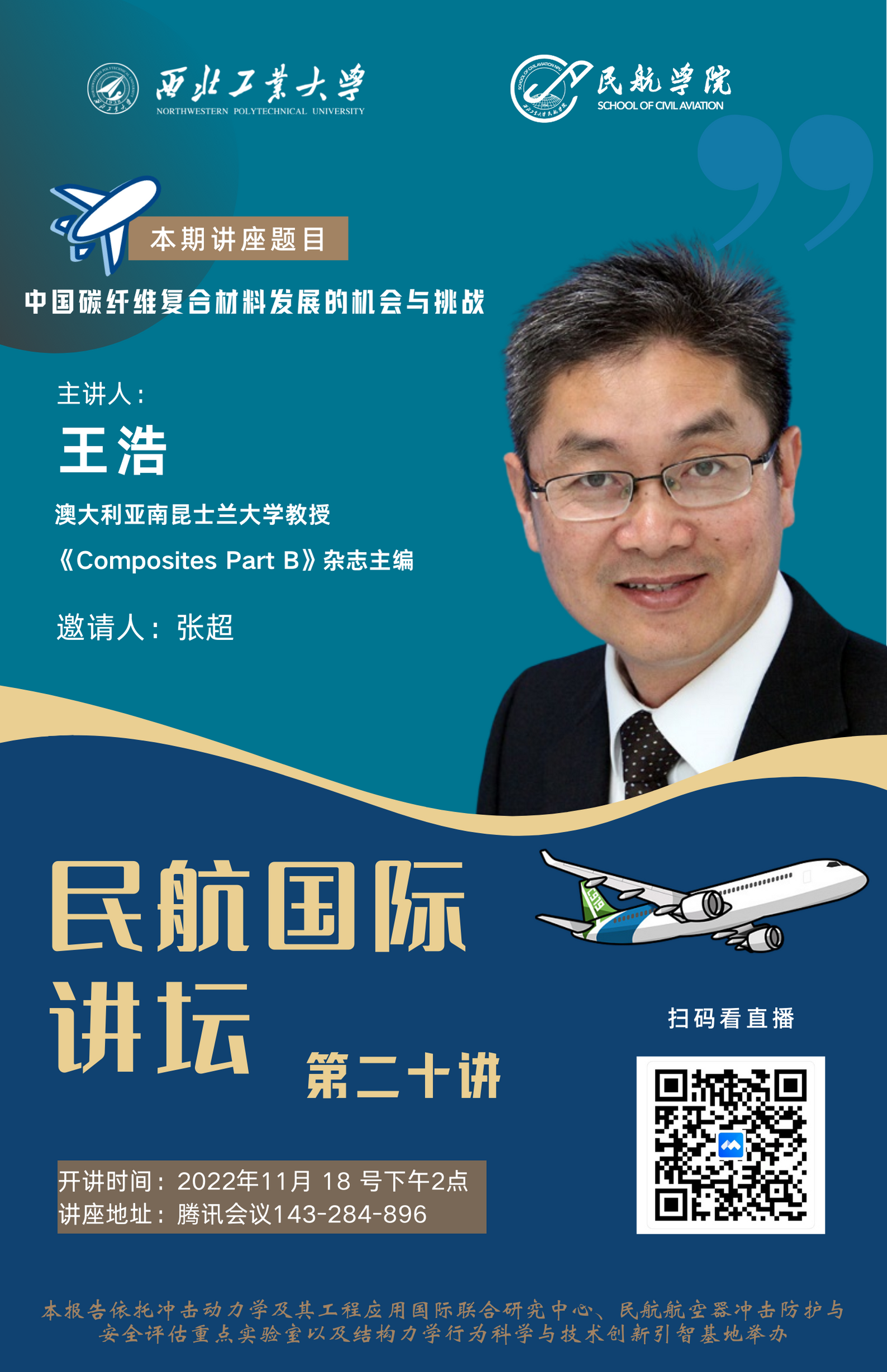 11月18号下午两点,我院拟线上举办“中国碳纤维复合材料发展的机会与挑战”专题讲座,届时欢迎各位老师同学参会交流。以下是讲座详细信息: