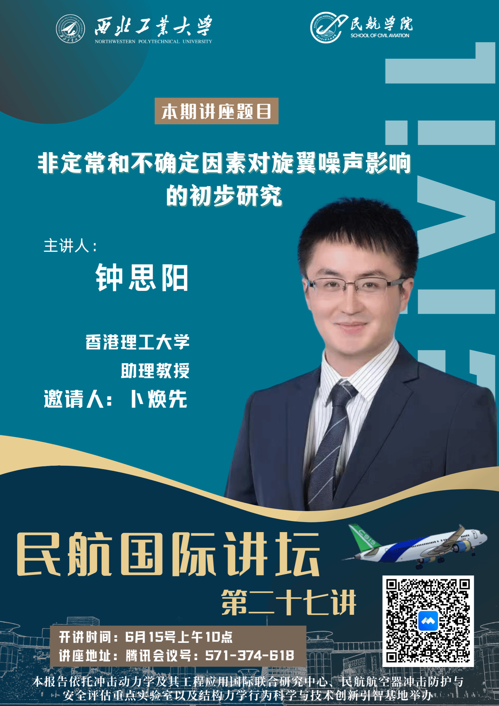 6月15号上午10点,我院拟线上举办“非定常和不确定因素对旋翼噪声影响的初步研究”专题讲座,届时欢迎各位老师同学参会交流。以下是讲座详细信息: