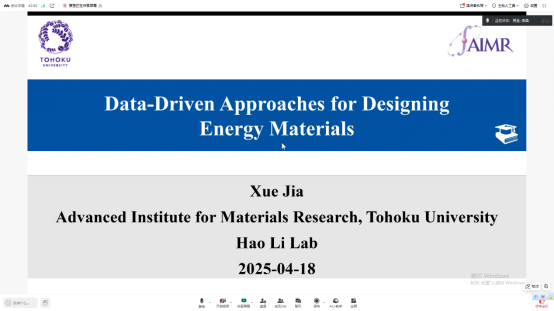 4月18日下午,日本东北大学贾雪助理教授应我院李善副教授的邀请,为民航国际讲坛作题为“数据驱动在能源材料设计中的应用”(Data-Driven Approaches for Designing Energy Materials)线上讲座。讲座由李善主持,吸引了学院近百名师生参加。