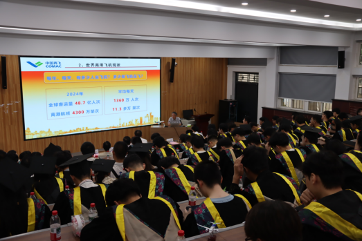 报告中,陈迎春总师系统讲解了中国商用飞机的发展历程与未来展望。陈迎春总师从商用飞机的战略地位谈起,详细分析了全球商用飞机的发展现状,并重点讲解了我国商用飞机的从零到有的奋斗历程。尤其在C919项目中,他讲述了技术突破与创新特色,深入阐述了中国民航事业的特色发展道路。最后提出了中国商用飞机未来发展的方向道路、技术路线和工程途径。陈迎春总师用生动的案例和深刻的见解,引导学生们树立正确的科研价值观,鼓励学生们在学习中勇于探索、敢于创新,增强了学生们科技报国之志,对全面理解把握科技创新引领现代化产业体系建设,坚持教育、科技、人才“三位一体”,加快推进我校“天下工大、世界三航”的愿景目标,具有很强的指导作用。