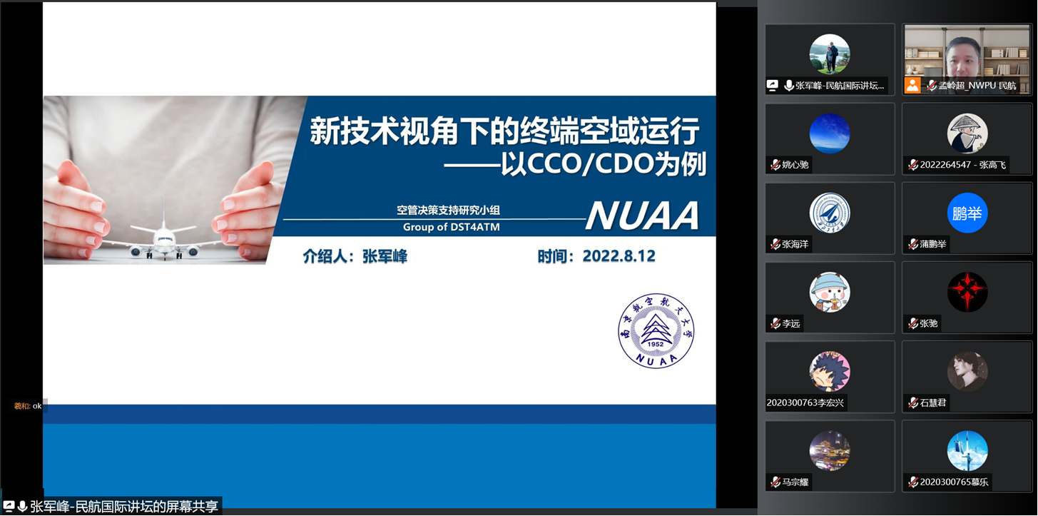 2022年8月12日,南京航空航天大学beat365中文官方网站张军峰副教授应我院孟岭超副教授邀请,为民航国际讲坛第十四讲作“新技术视角下的进场运行”线上讲座,学院广大师生参加了此次讲座。讲座由学院孟岭超副教授主持。