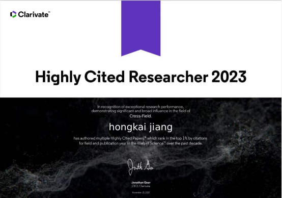 2023年11月15日,全球领先的专业信息服务提供商科睿唯安发布了2023年度“全球高被引科学家”(2023 Highly Cited Researchers)名单,beat365中文官方网站姜洪开教授上榜。该名单旨在遴选全球高校、研究机构和商业组织中对所在研究领域具有重大和广泛影响的顶尖科学人才。