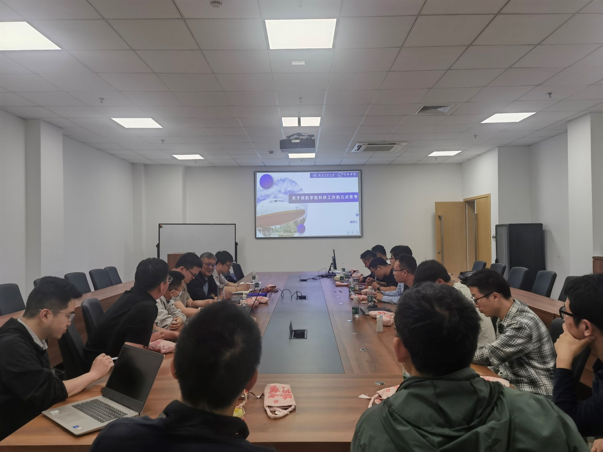 戴顺安介绍了适航团队相关科研工作进展,他指出,青年教师要紧跟国家战略和国内民机设计制造业主流,聚焦国家重大方针政策,促进科研方向与国家战略需求的契合性,根据需求组建联合研究团队,加强院内校内校外合作。