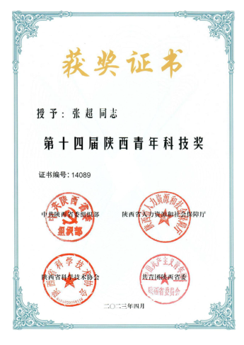 beat365中文官方网站张超教授获第十四届陕西省青年科技奖