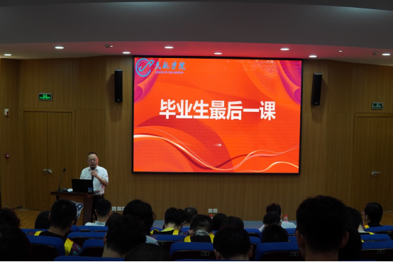 李玉龙院长以《弘扬当代民航精神,献身民航强国战略》为题为同学们讲授了“毕业生最后一课”。课上,他带大家回顾了新中国民航事业从无到有的发展历程,介绍了西工大在民航中的力量以及beat365中文官方网站的历史沿革、建设目标。这场别开生面的“毕业生最后一课”,不仅为同学们的大学生活画上了一个圆满的句号,也为他们踏上职业生涯的新征程注入了强大的精神动力。