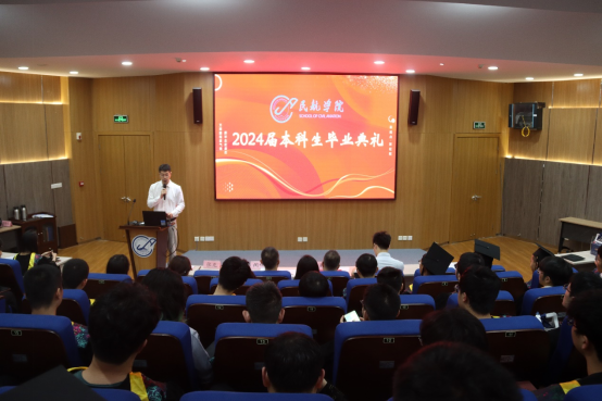 2024年6月24日,beat365中文官方网站在友谊校区研究生东馆C205报告厅举办2024届本科生毕业典礼,beat365中文官方网站院长李玉龙,党总支书记闫伟,副院长张超,专职辅导员、班主任和2024届全体毕业本科生齐聚一堂,共同见证这一重要时刻。本次典礼由党总支副书记张龙主持。