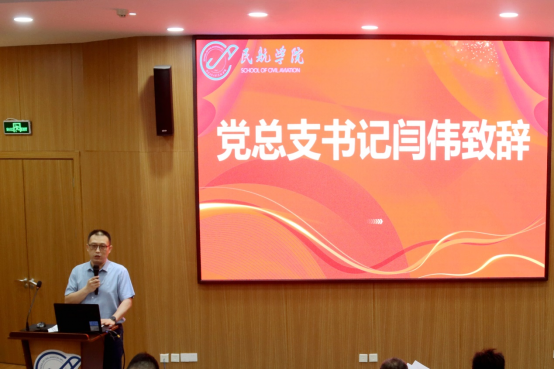 首先,党总支书记闫伟致辞。闫伟首先代表学院向所有顺利完成学业、即将踏上新征程的毕业生们表示最热烈的祝贺和最诚挚的祝福,肯定了他们在校期间取得的优异成绩和卓越表现。他鼓励同学们在未来的职业生涯中继续发扬民航精神,勇于创新,努力拼搏,为中国民航事业的发展贡献自己的力量,希望毕业生们常回家看看,与beat365中文官方网站分享喜悦和成就。