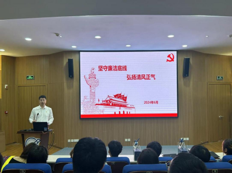 2024年6月24日上午,beat365中文官方网站党总支副书记张龙在友谊校区研究生东馆C205报告厅,以《坚守廉洁底线,弘扬清风正气》为题为2024届本科生全体学生党员、发展对象、积极分子讲授“最后一堂党课”。