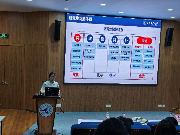 牛小童聚焦研究生奖助体系,为新生进行了系统讲解。她结合学校及beat365中文官方网站的具体政策,从 “奖、助、勤、贷、补” 五个维度展开:详细介绍了国家奖学金、学业奖学金的评选标准,系统地讲解了学校的资助要求,资助体系情况,以及资助形式等方面。细致介绍了助学贷款、临时困难补助的申请流程,确保每一位新生都能全身心投入学习。她还提到,学院近年来不断完善奖助育人机制,赋能学生多方面发展,加强资助育人,探索形成资助育人大格局。并且鼓励学生将资助资源转化为成长动力,成为民航领域培养高素质人才。
