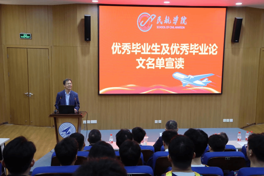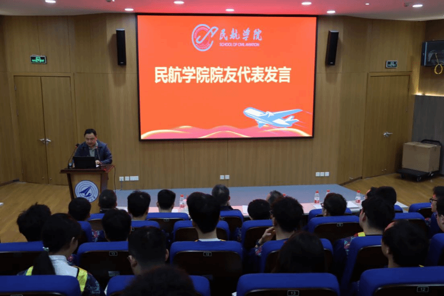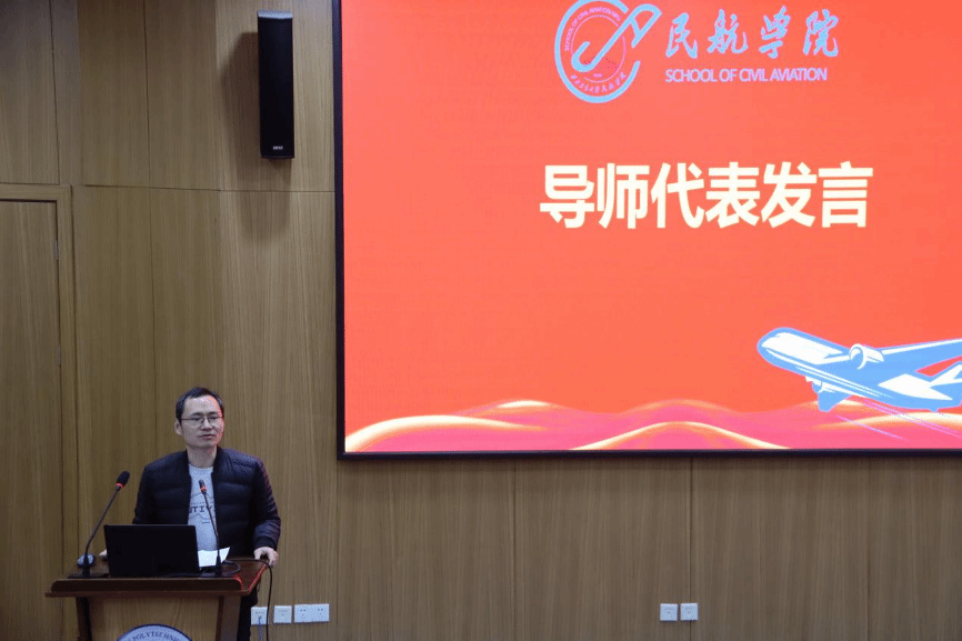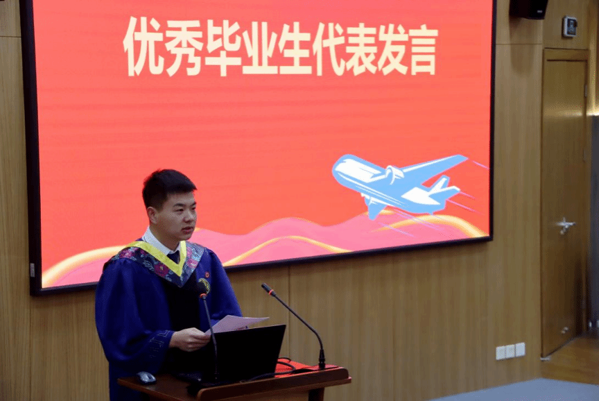 导师代表陈杰教授以丰富的人生阅历和深情的寄语,向毕业生送上最真挚的祝福。他回顾了同学们三年来的辛勤耕耘与卓越成果,展望未来时满怀期待,也希望在今后的科研攻关与基层实践中继续发扬“公诚勇毅”的校训精神,不断书写属于自己的传奇。同时,校友代表高广睿以亲身经历激励在座的每一位毕业生,呼吁他们以实业报国为己任,将个人梦想融入国家的航空发展大局,践行民航人的使命担当。