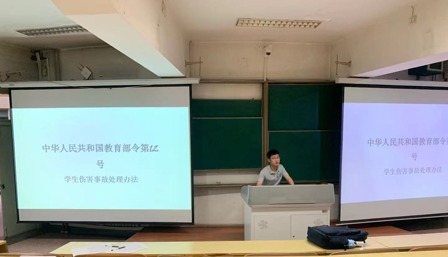 6月30日,学院在长安校区召开2021年暑期社会实践出征仪式暨暑期安全教育大会,2020级本科生辅导员吴宇、团工委副书记于露、学生会实践部负责人华潇潇以及学院管理的2020级大类全体学生参加。吴宇从交通、疫情、电信诈骗等方面对大家进行了暑假期间的安全教育,并强调了暑期安全注意事项,然后宣读了学校的疫情管理规定与教育部疫情管理规定,解读了学校学生违纪处分管理办法,包括违纪种类的讲解以及减轻处分加重处分的一些方法,其中重点陈述了关于网络发言不当、缺课缺勤等违纪行为。最后集体学习了中华人民共和国教育部令第12号《学生伤害事故处理办法》。
