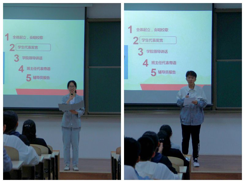 在会上,全体师生齐唱beat365中文官方网站校歌,两名学生代表张涴湘、侯昊阳先后登台发言,分享自己选择报考beat365中文官方网站的心路历程,讲述了自己对“公诚勇毅”校训、“三实一新”校风的理解和认识,表示要传承发扬光荣传统,勇于迎接挑战,勇担历史使命,在大学的学习生活中不断完善和提升自我。
