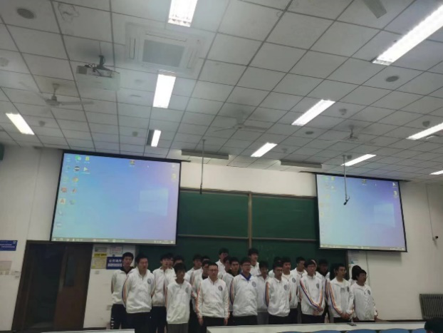首先,19班同学先进行班级展示。刘家乐同学利用PPT,详细讲解了19班的班级建设、班级班规,也展示了同学们的日常生活片段,展现出很强的班级凝聚力。然后,19班全体同学一起演唱了班歌《海阔天空》,紧接着又进行了集体演讲,字里行间表达出对校园的热爱。