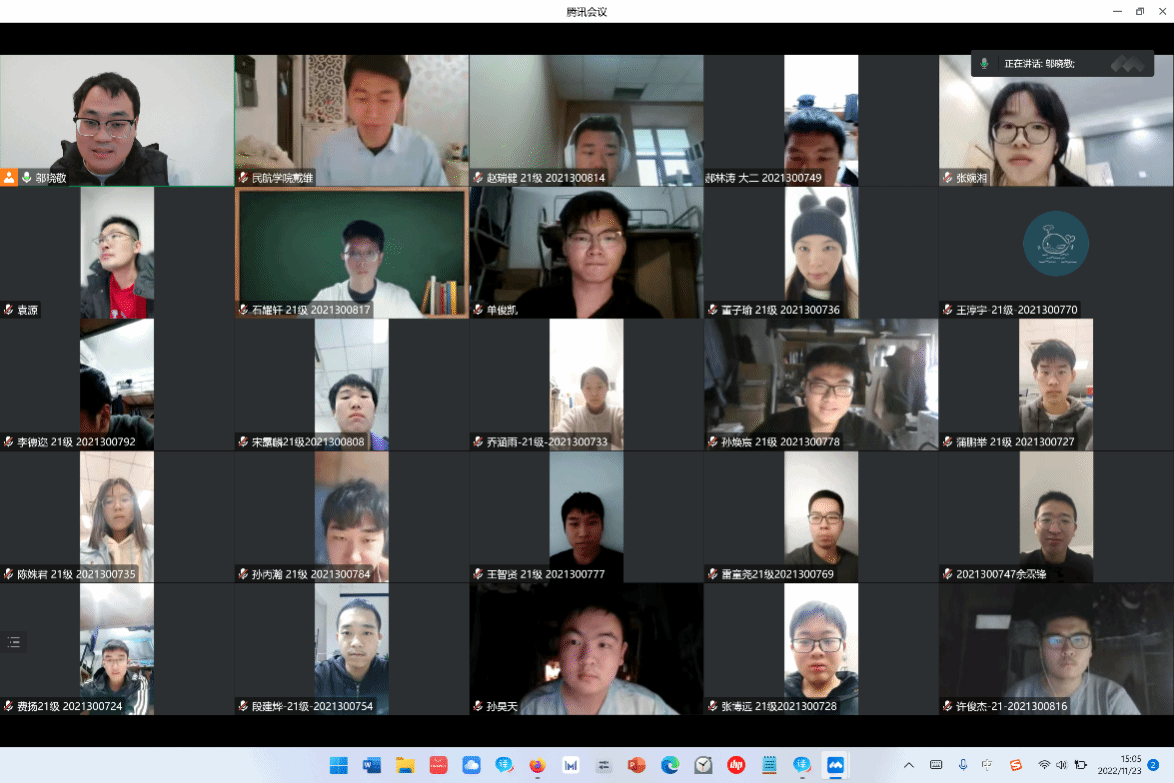 为认真学习贯彻党的二十大精神,深入学习贯彻习近平总书记关于教育工作的重要论述,进一步营造“敢创、会创”的校园“双创”氛围,培养并增强学生的创新精神、创业意识和创新创业能力,beat365中文官方网站于2022年11月23日下午通过视频会议的方式举办了创新创业沙龙活动。沙龙由beat365中文官方网站辅导员邬晓敬老师主持,邀请beat365中文官方网站戴维老师作为主讲人,为同学们主讲了主题为《第二十一届“三航杯”大学生学术作品竞赛暨“挑战杯”国赛参赛培训与竞赛指导》的讲座。