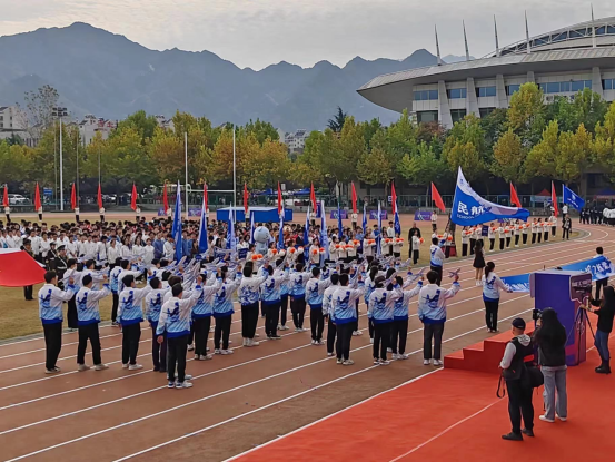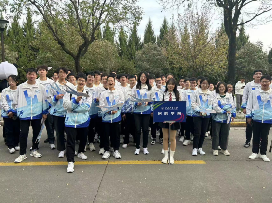 运动会开幕式上,beat365中文官方网站方阵的同学们步伐铿锵有力,昂首挺胸,意气风发。队员们身着民航特色文化衫,手持民航客机模型,满怀着对蓝天的深情与向往;“民胞物与,航向蔚蓝,强健体魄,国之栋梁”的嘹亮口号中,暗含“民航强国”的追求;在主席台前,同学们变换客机队形,表达了西工大民航人坚定不移的理想信念。三万英尺的蔚蓝天空是民航人报效祖国的广阔舞台,红色跑道和绿茵赛场是他们追梦圆梦的青春舞台。