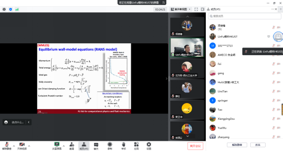 在报告中,傅林教授首先介绍了不可压缩和可压缩壁面边界层湍流模型研究相关背景,随后,对预测内外交互模式模型(IOIM)、平衡壁模型方程(RANS模型)等相关专业知识进行了详细阐述。对于不可压缩壁面湍流,傅林教授展示了其团队研究的一种新的评估在给定壁面法向高度的对数区域内壁面附涡的流向倾角的方法,并分享了其最新研究成果:附流涡流的SIAs在低雷诺数和中雷诺数下具有雷诺数依赖性,并随着雷诺数的增加在45o处趋于饱和。此外,傅林教授介绍了其团队在可压缩壁面有界湍流建模方面的最新工作,他提出通过一种新的变换,将不可压缩壁面湍流的平均速度分布映射到壁面不可压缩规律,将不可压缩壁面模型扩展到高速流动,这与现有方法不同的是,该方法能够在没有特定的调整,没有充分的通道和管道流动的数值模拟数据,在有或没有传热的边界层的情况下进行变换。