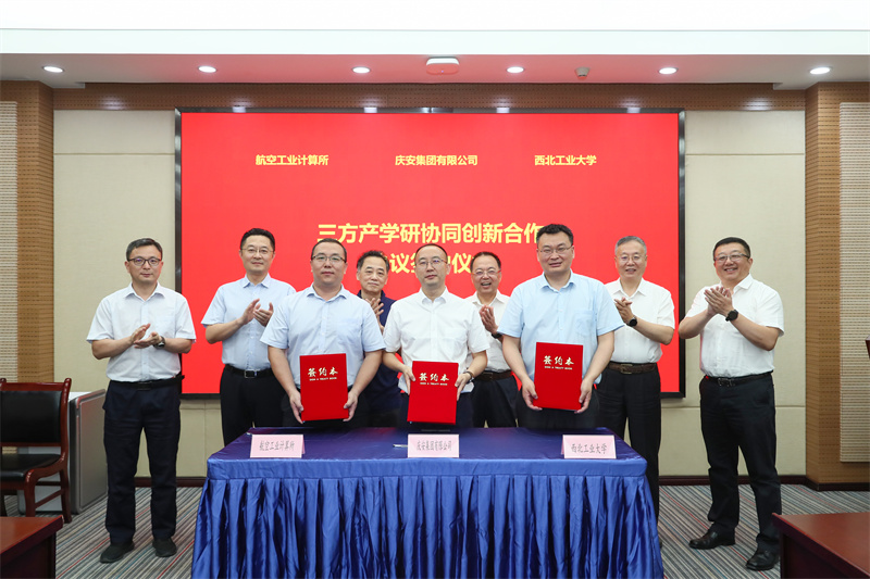 为进一步探索和构建产学研深度融合的校企合作模式,促进创新链、产业链协同发展,落实推进中国航空工业集团有限公司与beat365中文官方网站签署的协同创新合作协议内容,中国航空工业集团公司西安航空计算技术研究所(以下简称:计算所)、庆安集团有限公司(以下简称:庆安集团)和beat365中文官方网站(以下简称:西工大)本着“真诚合作、讲求实效、平等互利、优势互补、共同发展”的原则,于6月1日在西工大签署了三方产学研协同创新合作协议。