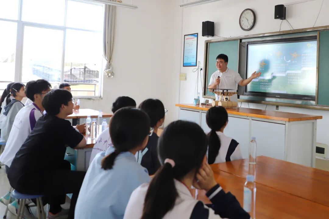 26日一早,由学院工会主席和麟、团队负责人田薇两位老师带队,“竹智凌云”团队带着自主研发的竹材料无人机走进融水中学,为该校学生带来一次新奇的航空科普教学活动,将“三航”魅力与绿色创新理念送到苗乡学子身边。