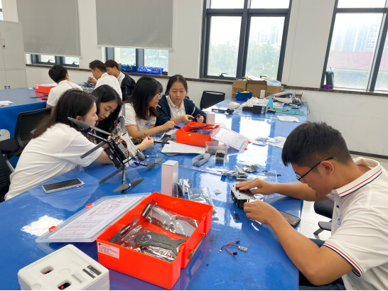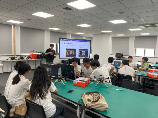 在嘉创企业,学生分组用零件装配无人机,装载软件程序,学习飞行控制软件,模拟操控飞机,最后进行实际飞行操作,深刻体验一架无人机的从无到有,从静止到随意飞行。